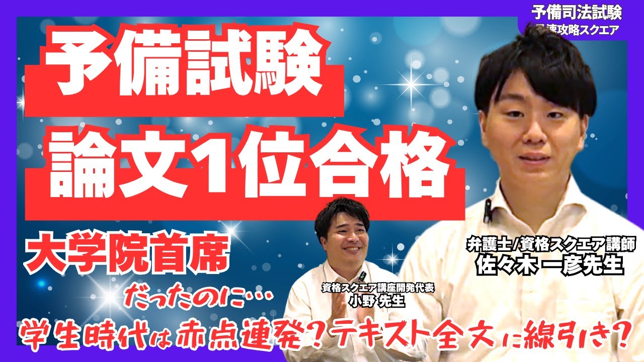 【動画】最初はまるで外国語!? そこから予備試験 論文1位へ【商法担当 佐々木一彦先生】の逆転ストーリー